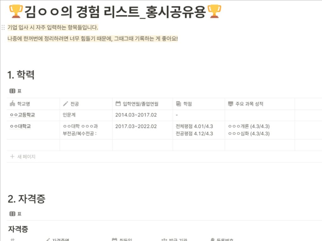 ③ 경험 기록
